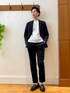 モノトーンコーデのビジネスカジュアルスタイル😀 とても軽く、ストレッチ性抜群のナイロン素材セットアップです。 インナーのカットソーはジャケットインナー用特別仕様のドレスTシャツです。 首元の詰まり具合、着丈、裾のリブ使用など計算され尽くしたデザインです。 ✨Instagram✨ ↓ @t.yamaguchi_nol