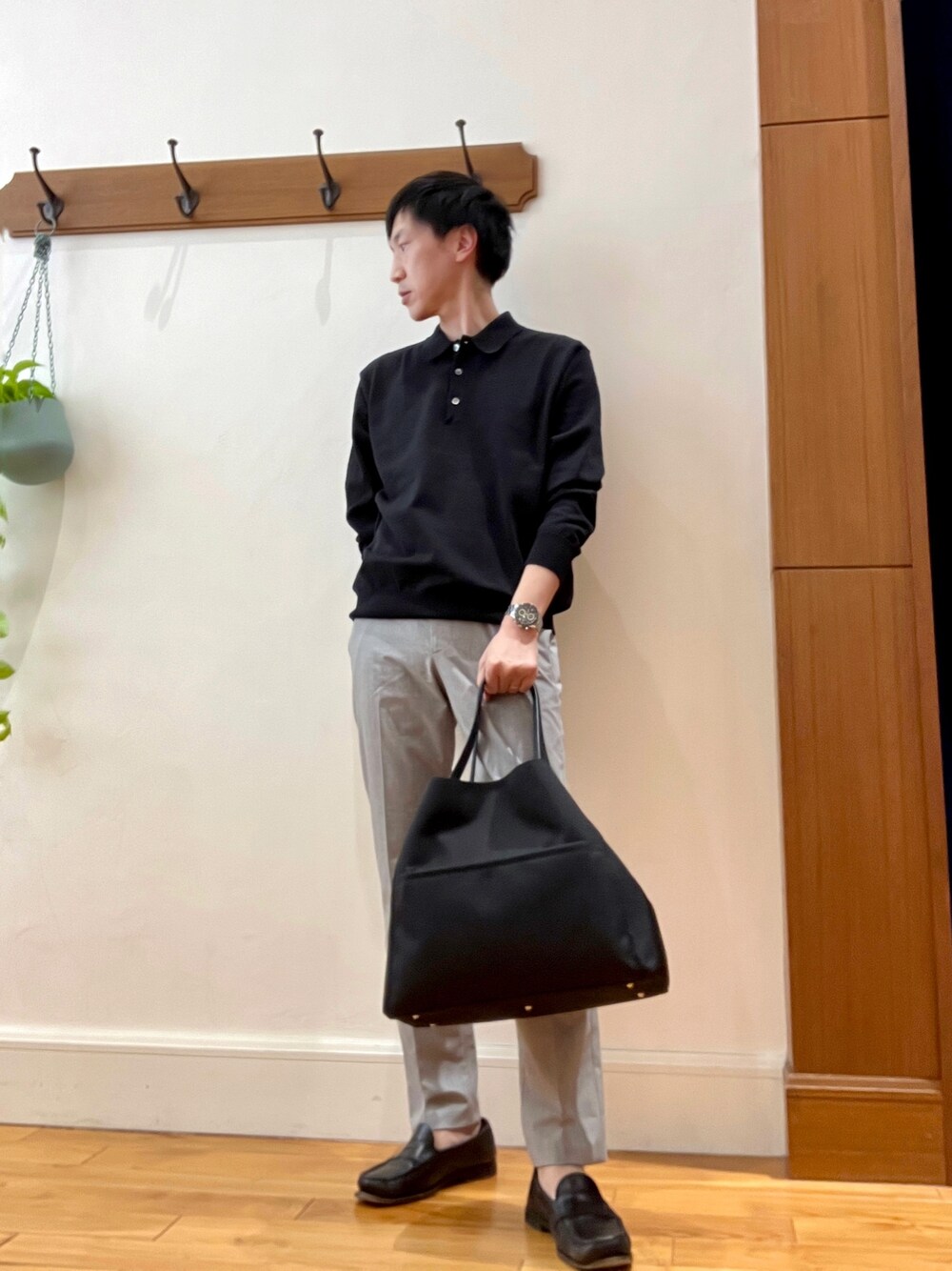 【BATONER】のニットポロを使った春のオフィスカジュアルスタイル🌸 人気ニットブランド【BATONER】のニットポロ、今シーズンの新素材バージョンです。 パンツは【Nolley’s Goodman】春夏定番のクールドッツパンツ。 信じられないくらいくらいの軽さと涼しさがたまりません😀 キレイめにまとめたかったので、バッグは【GALLERIANT 】のトートバッグで上品さを足してみました。 ✨Instagram✨ ↓ @t.yamaguchi_nol
