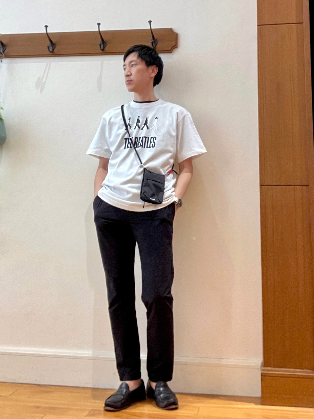 【Good Rock Speed】のビートルズプリントTシャツを使ったモノトーンスタイル。 シンプルなモノトーンスタイルに、今年人気の【topologie】スマホポーチを組み合わせました。 アウターがいらない時期に入るとアクセント出しに活躍しそうです😀 ✨Instagram✨ ↓ @t.yamaguchi_nol
