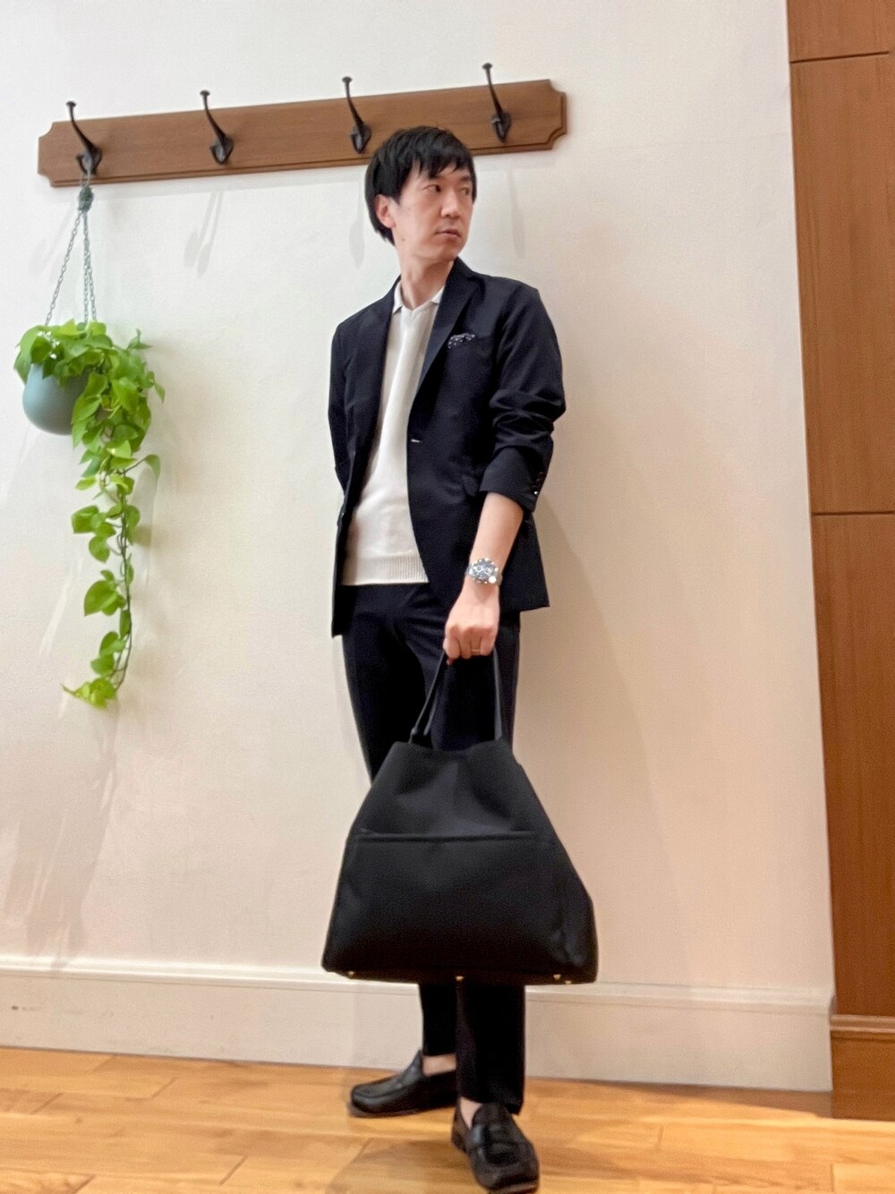 夏のオフィスカジュアルの決定版! 【Nolley’s Goodman】春夏定番のクールドッツ素材セットアップです。 抜群の軽さ、涼しさ、通気性の良さを誇り、洗濯可能な万能機能素材です。 色によって全く雰囲気が変わるこのシリーズで 唯一無地見えするダークネイビーを着用しました。 堅苦しくならないようにインナーは半袖ニットポロのスキッパータイプで合わせました。 サマーニット素材です涼しく着れる優れ物で、裾がリブ編みなのでジャケットのインナーとしてバランスが取りやすいです。 上品な雰囲気でまとめたかったので、バッグは 【GALLERIANT】のトートバッグを合わせました。 着用サイズ ジャケット XLサイズ パンツ Lサイズ ニットポロ Lサイズ ✨Instagram✨ ↓ @t.yamaguchi_nol