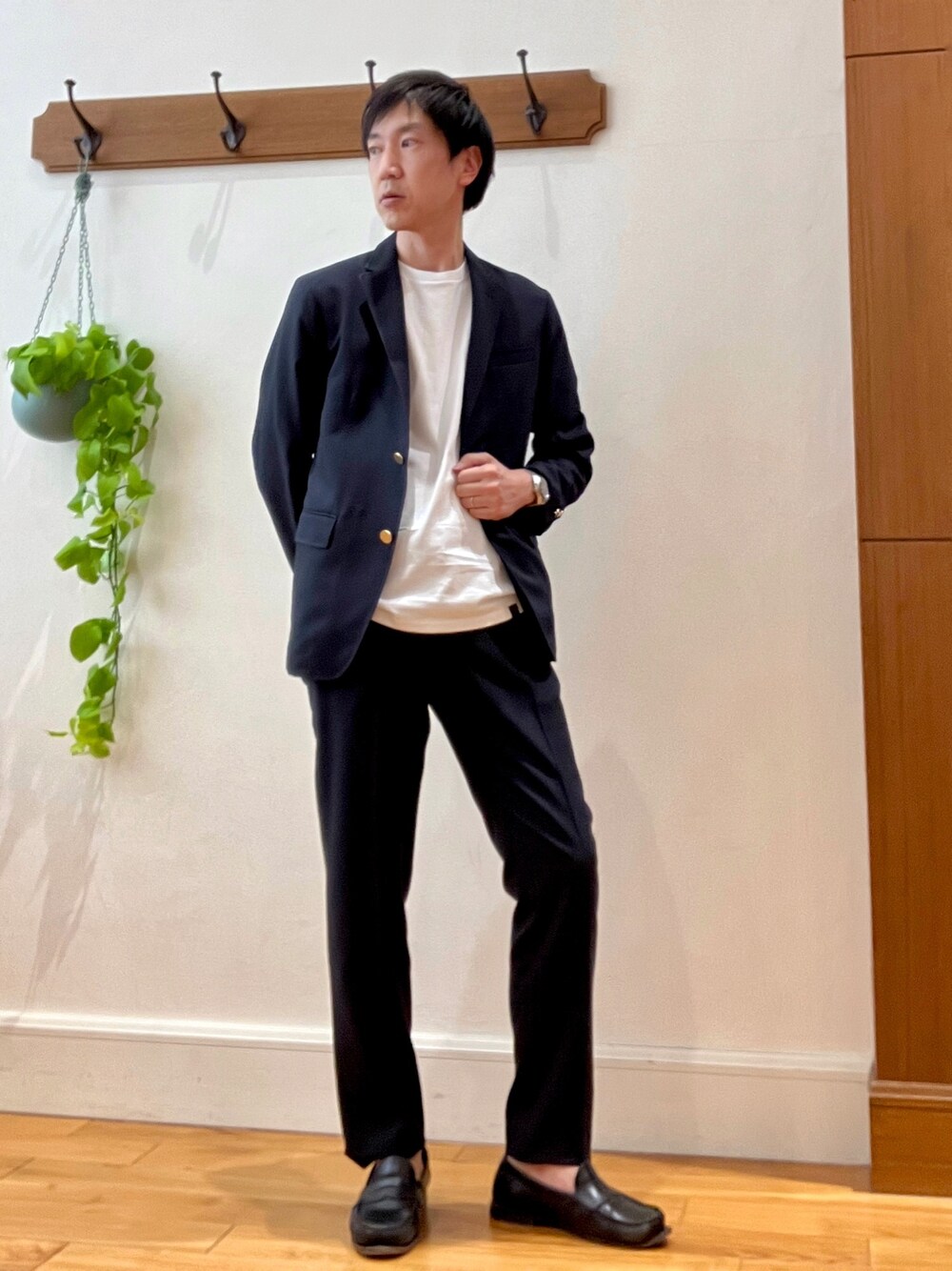 【D.C.WHITE】別注セットアップ ポリエステル100%で非常に軽く、柔らかい素材のセットアップです。 ジャケットは金ボタン、タイトすぎないシルエットでクラシカルな品の良さがあります。 パンツは細めのテーパードイプでスッキリしたシルエットが特徴です。 セットアップながらインナーをカットソーにすれば堅苦しくなく、キレイ目カジュアルからオフィスカジュアルまで幅広く対応できます。 もちろんシャツとネクタイでしっかりビジネス仕様でもお使いいただけます。 インナーは日本の人気ブランド【BATONER】のパックTシャツです。シンプルなデザインで上質に仕上げ、長年使っていただけるアイテムです。 サイズ感やや大きめなので、インナー使いメインであればいつもよりワンサイズ下げた方が良いと思います。 着用サイズ ジャケット Lサイズ(メーカーサイズ48) パンツ Lサイズ(メーカーサイズ48) Tシャツ Mサイズ(メーカーサイズ2) ✨Instagram✨ ↓ t.yamaguchi_nol