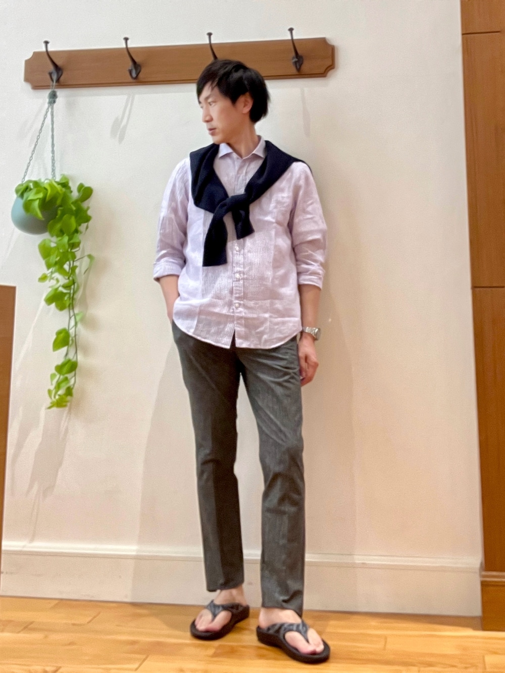 休日カジュアルシャツスタイル リネンシャツを使ったリラックススタイルです。 麻100%ながらチクチクせずに柔らかい肌触りのシャツと、ノーリーズグッドマン夏定番のクールドッツ素材シリーズのパンツをあわせました。 トップス、ボトムス共に軽く涼しく真夏も活躍してくれます。 サンダルは人気ブランド【OOFOS】のリカバリーサンダルです。 クッション性のある柔らかい履き心地と適度な反発力が両立したOOFOS定番No.1人気タイプです。 着用サイズ リネンシャツ Lサイズ パンツ Lサイズ カーディガン Mサイズ サンダル メーカーサイズ9 ✨Instagram✨ ↓ @t.yamaguchi_nol