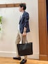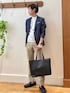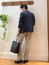 正統派クールビズスタイル🌞 リネン混のジャケットを使ったオフィスカジュアルコーデです。 ジャケットはサフィラン社製の高品質リネンを使い、清涼感あふれる風合いに仕上がっています。 天然素材ベースながらストレッチがしっかり効いており、着心地の良さと高い形状記憶性につながっています😀 インナーのドレスTシャツはジャケットのインナーとして使いやすい工夫が多数されています。 ハイネック気味の詰まった首元、裾のリブ仕様、シルケット加工で上品な光沢とクールビズスタイルにピッタリです。 パンツはノーリーズメンズの夏の定番テーパードタイプです。 綿麻素材で軽く、通気性の良さが抜群の安心感のあるシリーズです。 バッグはマイクロファイバーレザーを使用した【SONNE】の万能トートバッグです。 肩掛けが可能なハンドルとファイルやタブレット・PC なども収めやすい大きめのサイズ感で、どんなシーンでも活躍してくれます。 極力金具を使用しない事で軽量かつ、上品な光沢と細かなシボのある表情で上質感を表現しています。 着用サイズ ジャケット Lサイズ Tシャツ Mサイズ パンツ Lサイズ