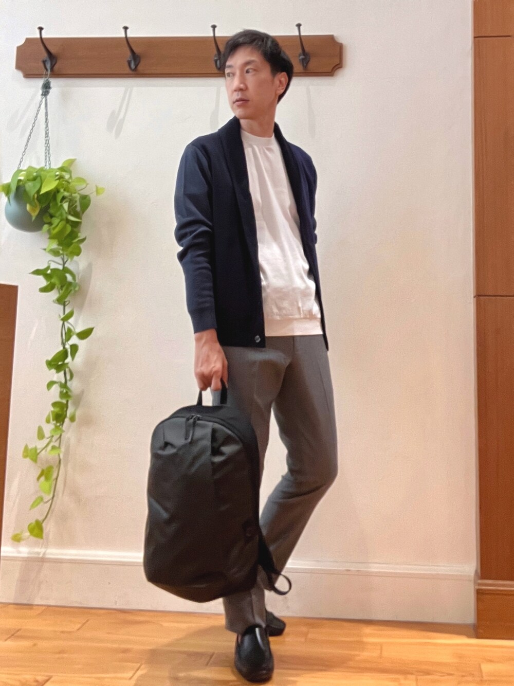 清潔感のあるON-OFF兼用スタイル😀 ネイビー×グレーの王道色合わせでどんなシーンにも対応出来るスタイリングです。 ショールカラーカーディガンはノーリーズメンズの定番アイテムです。 しっかりした生地感でアウターライクにも使えるので、ロングシーズン活躍してくれます。 インナーのカットソーは夏に大人気だったシルケットスムースドレスTシャツの長袖バージョンです。微光沢で上品な生地、ハーフモックネック、裾のリブ仕様はそのままで、ジャケットやカーディガンのインナーとして活躍間違い無しです。 パンツは快適素材【ソフトサーモ】を使用したノーリーズメンズの秋冬定番シリーズです。 発熱、保温性に優れたウールライクな生地は肌触りもソフトタッチで着心地抜群です。 バックパックは【Wexley】の人気定番シリーズstem backpackのフロントコーティングモデルです。シンプルながらフロント斜めカットジッパーポケットがアクセントになります。 着用サイズ ショールカーディガン Lサイズ カットソー Lサイズ パンツ Lサイズ ✨Instagram✨ ↓ @t.yamaguchi_nol