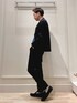 正統派オフィスカジュアルスタイル😀 ジャージ素材のイージーセットアップのインナーにVネックニットを合わせたビジネスカジュアルコーディネートです。 セットアップはハリのあるシャーク柄ジャージ生地で、しっかりストレッチが効き、シワになりにくい便利素材です。 パンツは裾にかけて細くなるテーパードシルエットで、ドローコードとウエスト後ろゴムのイージー仕様です。ドローコードは内側に収納可能です。 ニットはウール×アクリルの分厚過ぎない12ゲージリンクス編みタイプです。 前身頃に織り柄があり、一枚で着ても地味になりません。 深すぎず浅すぎない上品なVネックとスッキリシルエットなので、シャツやジャケットのインナーとしてもバランス良く使っていただけます。 着用サイズ ジャケット Lサイズ パンツ Lサイズ Vネックニット Lサイズ ✨Instagram✨ ↓ @t.yamaguchi_nol