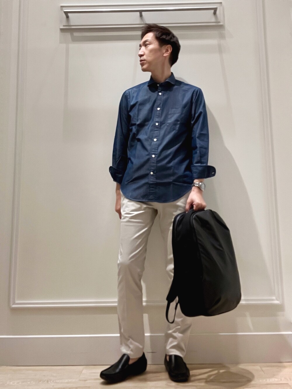 爽やかカジュアルスタイル😀 デニムシャツを使ったシンプルなキレイめカジュアルコーディネートです。 デニムシャツはON/OFF兼用で使える便利アイテムです。 着丈バランスが抜群で、裾をインにしても出して着てもどちらでも大丈夫です。 パンツはノーリーズメンズの定番テーパードパンツの春生地バージョンです。 軽く、しっかりストレッチが効いて履き心地抜群です。 バッグは【WEXLEY】のACTIVEシリーズです。 20リットル2層式の大容量、キズつきにくい生地、止水ファスナー仕様など使い勝手の良さと見た目の高級感を両立した人気モデルです。 着用サイズ デニムシャツ Lサイズ パンツ Lサイズ ✨Instagram✨ ↓ @t.yamaguchi_nol