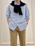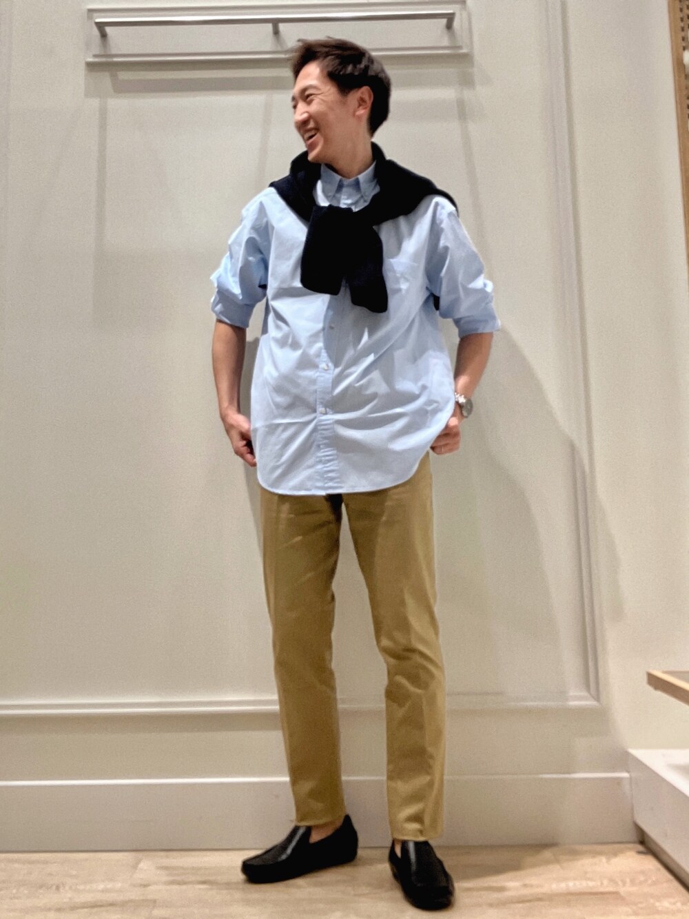 シンプルシャツスタイル😀 ゆったりしたリラックスシルエットのボタンダウンシャツを使ったシンプルカジュアルコーディネートです。 少し色を足したかったのでカーディガンを肩掛けで使いました。 シャツはピーチ起毛加工を施したソフトな肌触りの綿100%オールシーズンタイプです。 上品なカジュアル感があり、1枚でサラッと着てもサマになる便利アイテムです。 パンツはノーリーズメンズの定番テーパードパンツの春バージョンです。 軽く、しっかりストレッチが効いて履き心地抜群です。 着用サイズ ボタンダウンシャツ Lサイズ ストレッチパンツ Lサイズ ✨Instagram✨ ↓ @t.yamaguchi_nol
