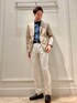 明るめカラーのジャケパンスタイル😀 色で軽さを出した清潔感のあるオフィスカジュアルコーディネートです。 ジャケットはイタリアLIMONTA社の定番生機「DOLMIAS SPINA」を石川の小松マテーレにて染色と撥水加工を行ったこだわりの微光沢素材を使用しています。 カーディガン感覚で使える軽さとスッキリシルエットでどんなスタイリングにもマッチします。 デニムシャツはON/OFF兼用で使える便利アイテムです。 着丈バランスが抜群で、裾をインにしても出して着てもどちらでも大丈夫です。 パンツはノーリーズメンズの定番テーパードパンツの春生地バージョンです。 軽く、しっかりストレッチが効いて履き心地抜群です。 着用サイズ ジャケット Lサイズ デニムシャツ Lサイズ パンツ Lサイズ ✨Instagram✨ ↓ @t.yamaguchi_nol