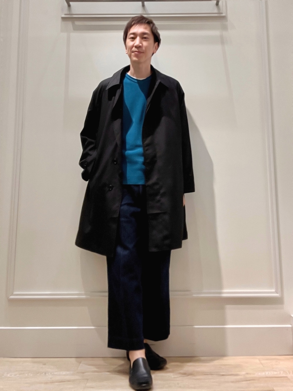 Tatsuo.YM(ノーリーズ&グッドマンららぽーとEXPOCITY店)のステンカラーコート「【TAION/タイオン】《限定展開 / ビジカジ対応》別注NON DOWN BAL COLLAR COAT ステンカラー バルカラーコート」を使ったコーディネート