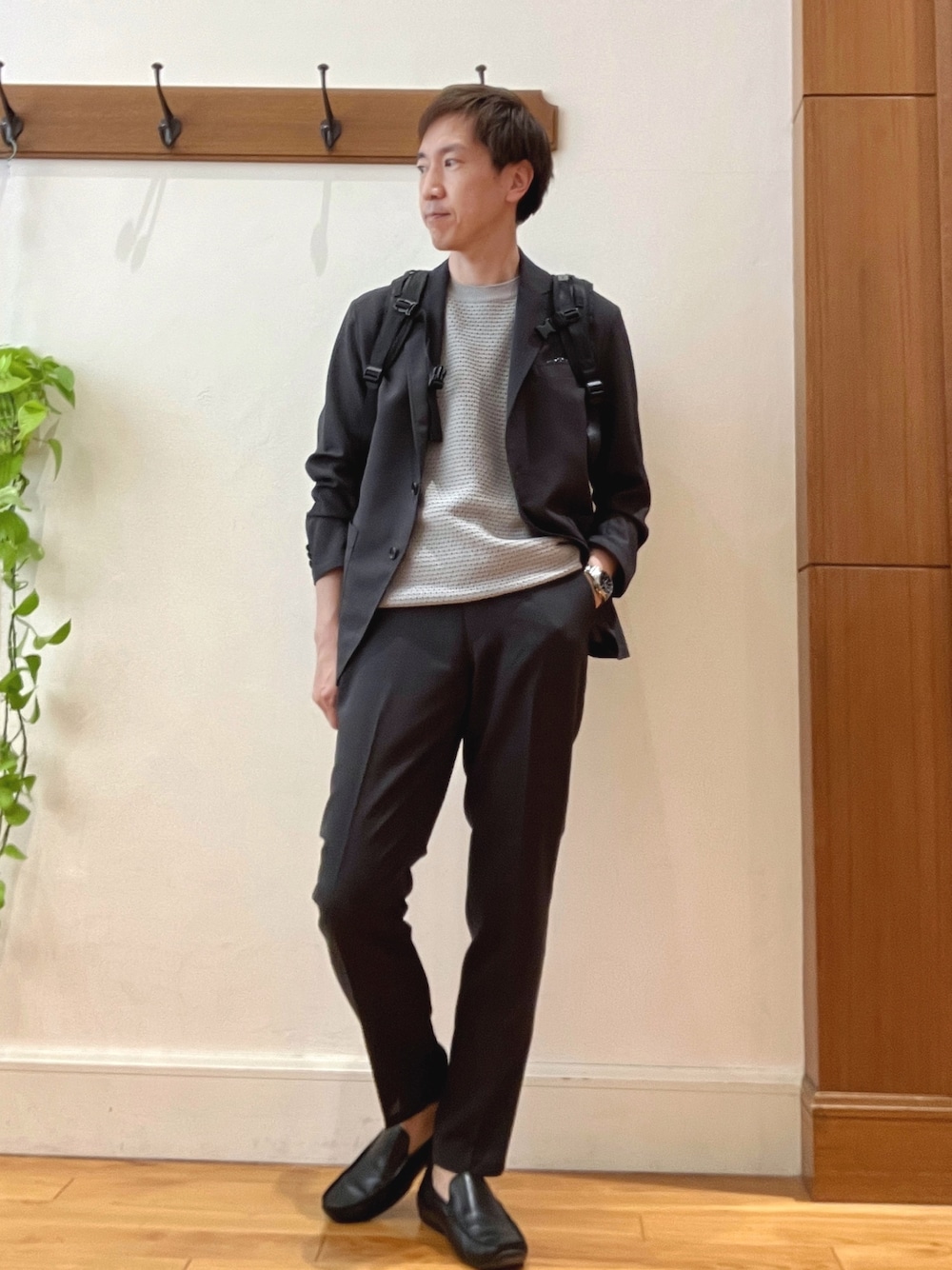 オフィスカジュアルスタイル😀 チャコールグレーのセットアップとライトグレーのサマーニットでグレーワントーンでまとめたビジネスカジュアルコーディネートです。 セットアップは吸汗・速乾素材「EVALET」使用でサラッとした肌触りが特徴です。 麻のような清涼感のあるメッシュ素材なので、ジャケットは春から夏にかけてカーディガン感覚で気軽に使えます。 パンツは程よいゆとりのあるテーパードシルエットです。 ドローコードと後ろゴムのイージー仕様でドローコードは内側に収納可能です。 インナーは【BATONER】の軽量サマーニットです。特殊な新素材を使用したドライタッチな柄編みタイプです。 驚くほど軽量でゆったりシルエットなのでとても楽な着心地です。 バックは日本の人気鞄ブランド 【beruf baggage】の定番 URBAN EXPLORER 20DRです。 シンプルな外見と充実した機能性で毎年人気のモデルです。 今回はビジネススタイルで合わせていますが、カジュアルスタイルの服装にもよく合います。 着用サイズ ジャケット Lサイズ パンツ Lサイズ サマーニット Mサイズ ✨Instagram✨ ↓ @t.yamaguchi_nol
