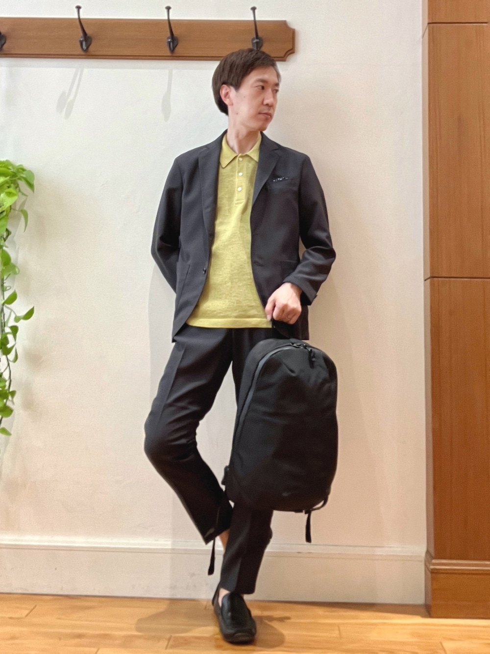 オフィスカジュアルスタイル😀 チャコールグレーのセットアップのインナーにカラーニットポロを合わせた春夏ビジネスカジュアルコーディネートです。 セットアップは吸汗・速乾素材「EVALET」使用でサラッとした肌触りが特徴です。 麻のような清涼感のあるメッシュ素材なので、ジャケットは春から夏にかけてカーディガン感覚で気軽に使えます。 パンツは程よいゆとりのあるテーパードシルエットです。 ドローコードと後ろゴムのイージー仕様でドローコードは内側に収納可能です。 ニットポロは擬麻(ギマ)素材を使った軽量で通気性の良いシリーズです。麻のようなシャリ感、通気性の良さがありながらシワになりにくい便利素材です。 バックパックは【WEXLEY】の人気定番シリーズSTEM BACKPACKです。オンオフ兼用で使え、バリスティックナイロンを使用した上品で耐久性に優れたモデルです。 着用サイズ ジャケット Lサイズ パンツ Lサイズ ポロシャツ Lサイズ ✨Instagram✨ ↓ @t.yamaguchi_nol