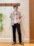 夏のバカンススタイル🌞 目を引く総柄のシャツとワイドパンツを合わせたリゾート感🏝のあるカジュアルコーディネートです。 インナーはワッフル素材のシロTシャツで清潔感を出してみました。 《シャツ》 軽く涼しいメッシュ生地の総柄オープンカラーシャツです。 ゆったり目のシルエットでリラックス感のあるコーディネートにぴったりです。 夏だからこ着ることができる柄シャツは存在感抜群です♪ 《Tシャツ》 ワッフル素材のフェイクレイヤードタイプです。汗をかいてかいても肌にまとわり付かない凹凸ある表面で梅雨〜真夏時期にオススメのTシャツです。 身長182センチ 着用サイズ 総柄シャツ Lサイズ ワッフルTシャツ Lサイズ ワイドパンツ Lサイズ ✨Instagram✨ ↓ @t.yamaguchi_nol
