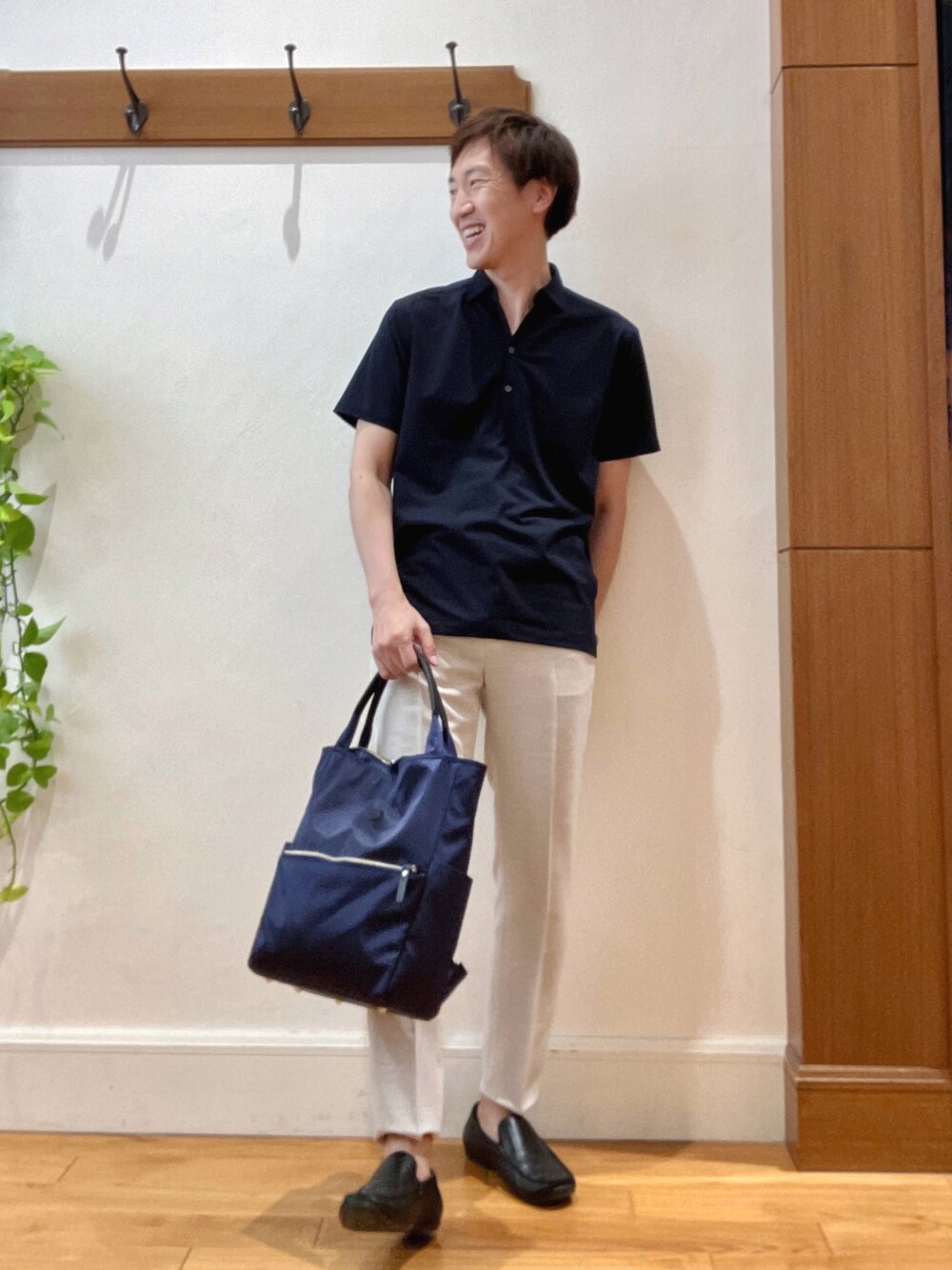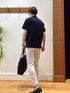 シンプルポロシャツスタイル😀 暑い時期にぴったりな爽やかマリンテーストコーディネートです。 ポロシャツと細めのテーパードパンツという相性抜群の組み合わせでキレイめカジュアルからクールビズスタイルまで対応出来ます。 《ポロシャツ》 COOL MAX素材を使用した軽量微光沢生地のポロシャツです。 スキッパーデザインなので首元がとても涼しげに見えます♪ ノーリーズのポロシャツの中でも1.2を争う軽さで、着心地抜群です。 《パンツ》 リネン風生地のテーパードパンツです。 表面の生地感もまるで麻素材かのような見栄えで、大人カジュアル感を演出してくれます。 《トートバッグ》 【CLEDRAN】別注の2WAYトートバッグです。光沢のあるナイロン生地が高級感を出してくれるオフィススタイルにもってこいのアイテムです。 身長182センチ 着用サイズ ポロシャツ Lサイズ パンツ Lサイズ ✨Instagram✨ ↓ @t.yamaguchi_nol