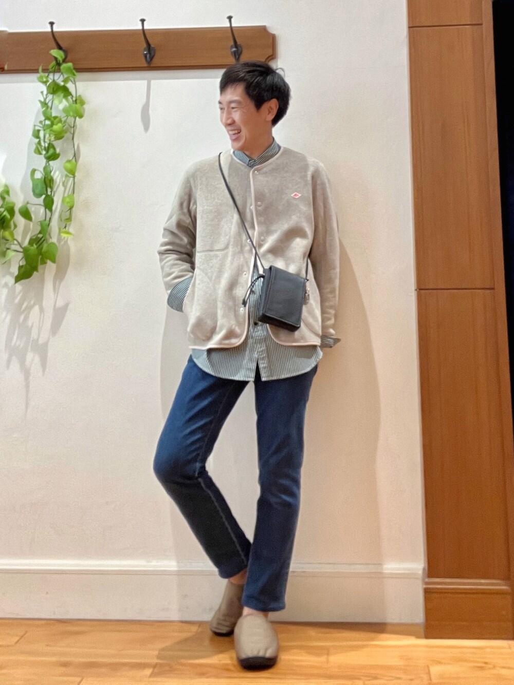 フリースジャケットとデニムでお出かけスタイル😀 軽量で保温力に優れた【DANTON】のフリースジャケットのインナーにオーバーサイズシャツを合わせて、首元•手首•裾からストライプ生地が覗くようにしました🙌 (ノーカラージャケット) 人気ブランド【DANTON】のフリースノーカラージャケットです。薄手フリースなので、アウターとしてもミドルレイヤーとしても活躍します。 カーディガン感覚で冬の室内着としても良さそうです。 (ショルダーバッグ) 柔らかい牛革を使用し上質なミニショルダーバッグ👝スマホホルダーのような使い方もできる大人カジュアル用アイテムです。 (サンダル) 【SUBU】のウィンターサンダル。定番のNANNENシリーズです。 素足で履いても暖かく、包み込まれるような抜群の履き心地で毎年人気のアイテムです。 サイズ3は足サイズ29センチまで対応出来るので、足の大きい方も安心して使っていただけます。 身長182センチ 着用サイズ フリースジャケット Lサイズ メーカー表記42 ストライプシャツ Lサイズ デニムパンツ Lサイズ ✨Instagram✨ ↓ @t.yamaguchi_nol