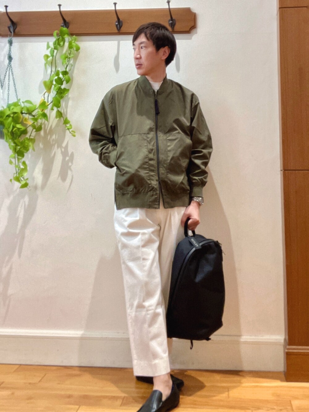 リバーシブルMA-1スタイル😁 TAIONのリバーシブルMA-1をホワイトワイドデニムパンツと合わせた大人カジュアルコーディネートです✨ 表裏で2色分楽しめるリバーシブルジャケットは季節問わず活躍してくれます♪ 【ブルゾン】 軽量で防汚性のあるミリタリーライン生地を使用したリバーシブルMA-1ジャケット😀 かなりゆったりしたシルエットなので、インナーで温度調整出来て、真夏と真冬以外は活躍してくれます。 インナーにパーカーを着てフードを出す着こなしもオススメです😁 【ワイドパンツ】 柔らかいデニム生地を使った2タックワイドパンツです。 センタープレスラインの入ったトラウザー型なので、ワイドパンツはカジュアル過ぎて苦手…という方にも是非オススメです。 楽な着心地、裾上げなしですぐに使える絶妙な着丈、シーズンレスで着用可能な生地感。 1本あると様々なスタイリングに対応出来るアイテムです! 【バックパック】 人気ブランド【Wexley】の定番STEMシリーズです。 撥水性、防キズ性に優れたバリスティックナイロン使用モデルで、ヘビーユーザーでも綺麗な状態で長年使用できるオススメモデルです🙆♂️ 自分も数年愛用しています😁 身長182センチ 着用サイズ MA-1ブルゾン Lサイズ ワイドパンツ Lサイズ