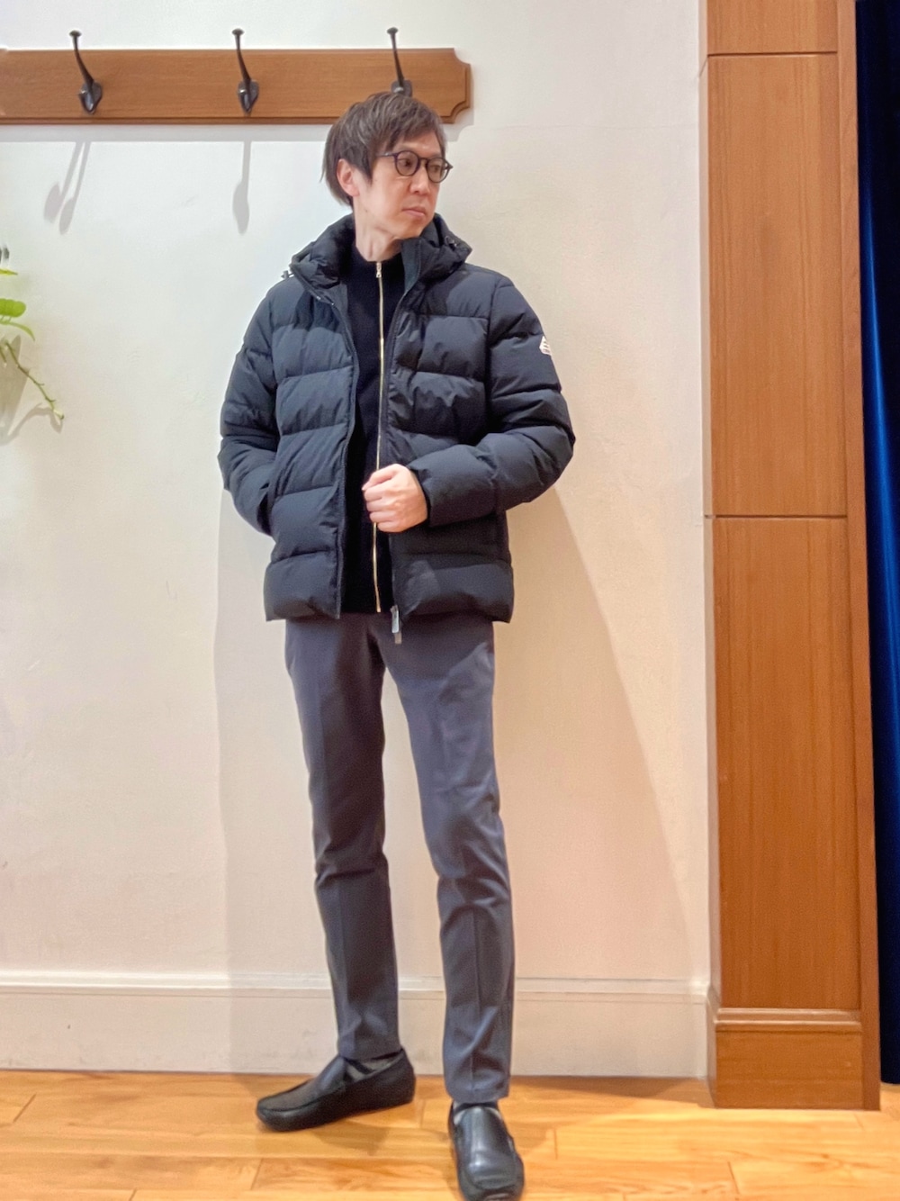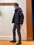 冬のお出かけダウンスタイル😀☃️ 《PYRENEX》のダウンジャケットを使い、モノトーンでシックにまとめた冬の大人カジュアルコーディネートです♪ 冬アウターと相性の良いスタンドカラージップカーディガンをインナーに使い、細めのパンツと合わせる事でスッキリしたシルエットと色使いのカジュアルスタイルの完成です♫ クロとグレー🩶しか使っていないのに、ダウンジャケットの光沢感のおかげで重く見えないオススメコーディネートです😀✨ 【ダウンジャケット】 カジュアル過ぎず、ドレッシー過ぎず、絶妙な高級感を味わえる人気ブランド PYRENEXの定番ダウンジャケット 《SPOUTNIC MINI RIPSTOP》です。 ヒップがちょうど隠れる着丈で、どんなスタイリングでもバランス良く合わせる事が出来ます♪ 【パンツ】 ノーリーズグッドマン定番の細めシルエットテーパードパンツです😀 ストレッチ生地で履き心地が良く、膝から下のスッキリしたラインが毎年好評のシリーズです✨ 裏面は温かみがある微起毛生地で、秋冬にオススメのON/OFF兼用パンツです♫ 【ジップアップニット】 秋はアウターとして、冬はコートインナーとして長期間活躍してくれるハイネックニットです✨ コレ1枚でコーディネートに変化を付けることができる便利アイテムです♪ 身長182センチ細身体型 着用サイズ ダウンジャケット Lサイズ ジップカーディガン Lサイズ テーパードパンツ Mサイズ