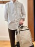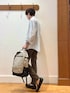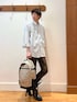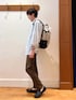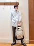 シンプルシャツスタイル😀☘️ 人気ブランド【DANTON】のゆったりシルエットシャツとノーリーズグッドマンオリジナルの細めパンツを合わせたシンプルな大人カジュアルコーディネートです♪ シャツが少し透け感のあるテロッとした生地で軽く明るい印象なので、パンツは春物では珍しいダークブラウンで落ち着いた印象をプラスしました✨ シャツはアームも太く、インナーの厚さを選ばないので、前ボタンを全部開けて軽い羽織ものとしても使えます♫ バックパックもシャツと同じDANTONの物で、27リットルサイズの大きめタイプですが、非常に軽量で女性の方にも好評なユニセックスタイプです! 身長182センチ細身体型 着用サイズ シャツ メーカー表記42 パンツ Mサイズ