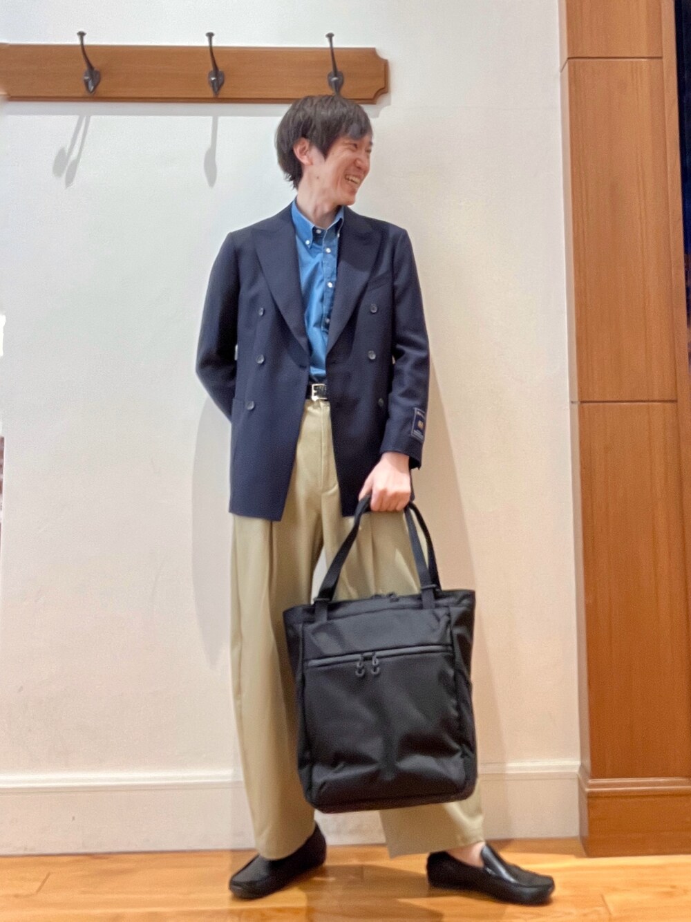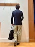 クラシカルなお出かけスタイル😀✨ 堅い印象になりがちなダブルのジャケットをデニムシャツとチノワイドパンツでカジュアルダウンした大人カジュアルコーディネートです♪ ウエストシェイプラインがキレイなジャケットは前ボタンを開けるか閉めるかで雰囲気をガラッと変える事が出来る優れ物です! もちろんシャツ&ネクタイや スラックスと合わせてのビジネススタイルにもピッタリです👔 身長182センチ細身体型 着用サイズ ダブルジャケット 48サイズ