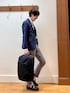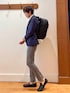 王道ジャケパンスタイル😀✨ ネイビージャケット✖︎グレーパンツという永遠の定番とも言えるジャケパンコーディネートです♫ インナーシャツは白で爽やかさを出し、パンツは少し短め丈で春夏らしい軽さをアピールしてみました☘️ いつの時代でも安心の清潔感あるれるスタイリングです‼️ 【ジャケット】 ノーリーズグッドマン春夏定番の機能素材 Cool dotsを使用した超軽量のテーラードジャケットです✨ 通気性も抜群の涼しいジャケットは春〜夏の気温が高い時期にピッタリです。 シルエットはやや細めでスッキリした印象になります。 【シャツ】 ドライな肌触りが特徴のサーフニット素材のボタンダウンシャツです。 まるでポロシャツのような着心地で、ビジカジスタイルにピッタリのアイテムです。 カッターシャツほどビシッとしたくはないけれど、襟があってきちんと感は欲しいという時に便利です😀 【パンツ】 ON/OFF兼用で着用できる 綿麻Cool Max素材の細めのテーパードパンツです♫ 毎年好評で定番のアイテムで、どんなスタイリングにも合わせる事が出来る万能さが人気です✨ 【バックパック】 ヨーロッパの人気鞄ブランドWEXLEYの2026新作バックパック《TWL》です🎒 堅牢性に優れたコーデュラバリスティックナイロンを使用しており、傷つきにくく、上品な光沢感が長持ちする優れ物です。 出張や旅行の際に便利な30リットル越えの大容量タイプですがそれ程大き過ぎず、 日常使いにも対応出来ます。 Wexleyにはこれまであまりなかった大型フロントポケットが付き、さらに使い勝手が良くなっています✌️ 身長182センチ細身体型 着用サイズ ジャケット Lサイズ シャツ Lサイズ パンツ Mサイズ