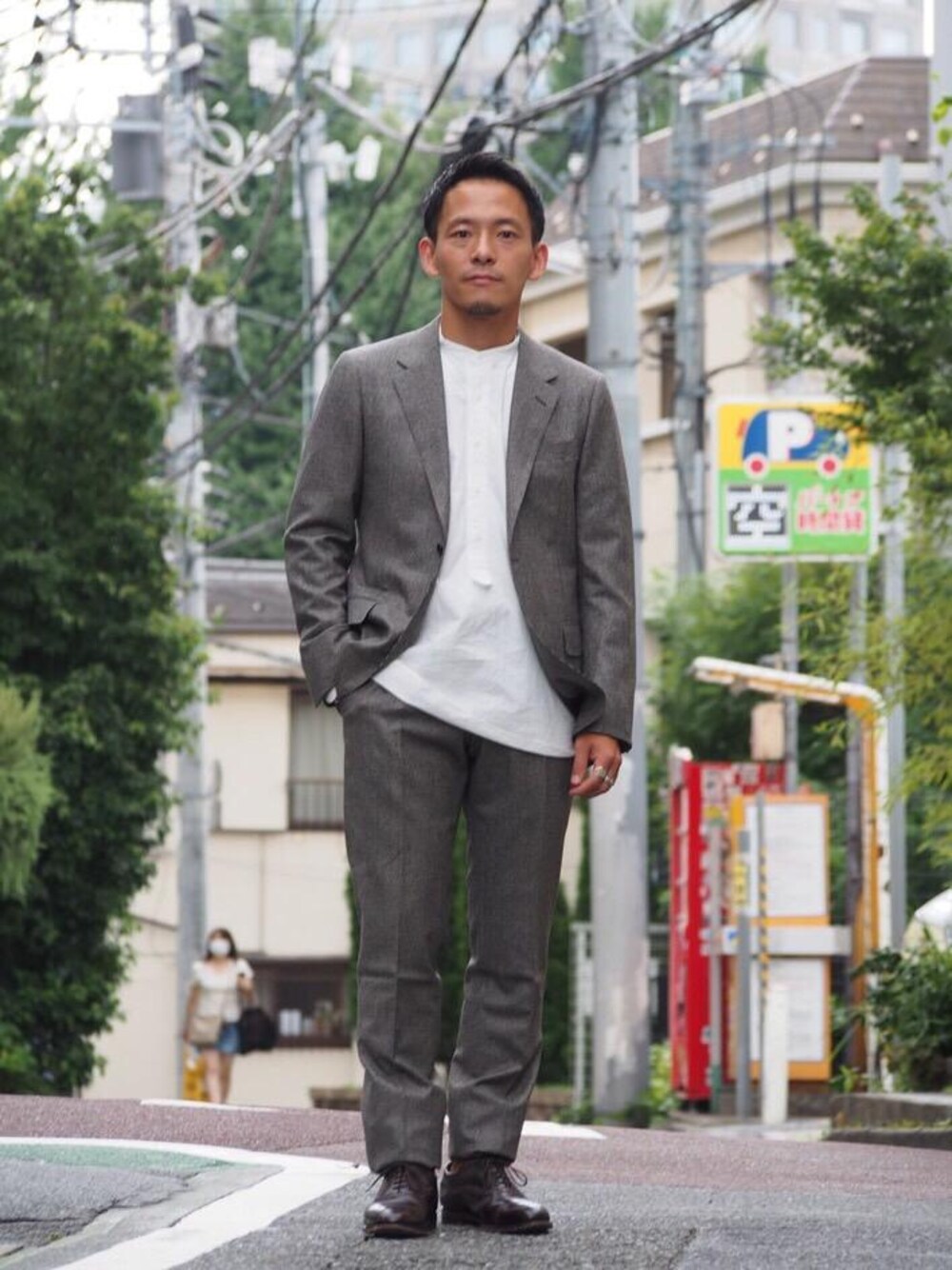 【身長】166㎝ 【普段サイズ】トップス:S ジャケット:44 ボトムス:S/M シューズ:26・5㎝ 【サイズ感】トップス:すっきり パンツ:細身 【素材感】セットアップ:見た目以上に柔らかく軽いです。 【着心地】トップス:特に肩周りの作りが良く非常に着心地良いです 【コーディネートポイント】 ハウンドトゥースのクラシックな柄ですが、堅い雰囲気にならずに着られます。タイドアップも良いですし、バンドカラーとの合わせも力が抜けた見え方でおすすめです。生地には、茶色も混ざっているので黒靴・茶靴どちらでも合わせられるの様々な組み合わせを楽しんで頂けます。