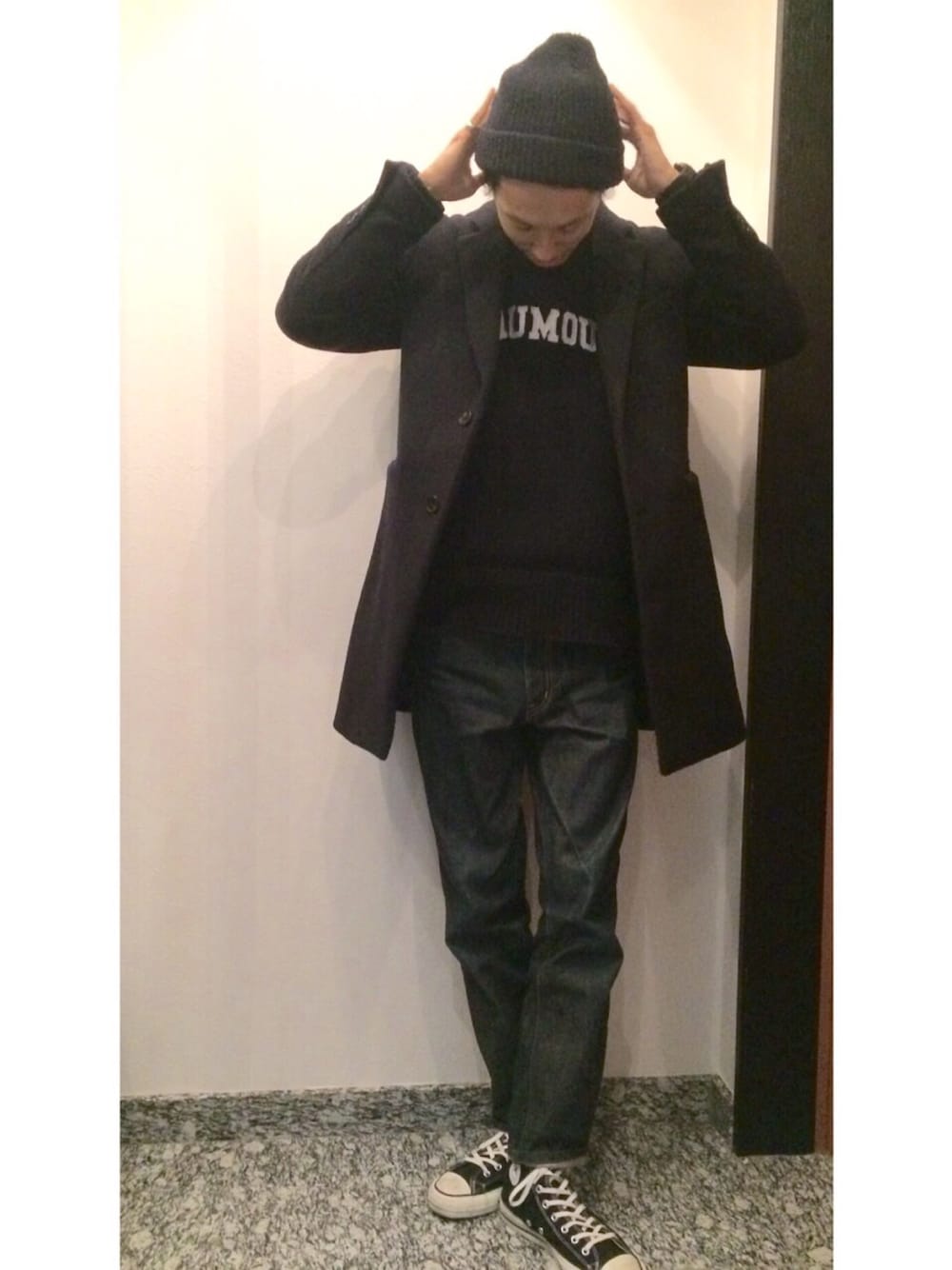 デニムとオールスターはそのままで。 トップスで変化を。