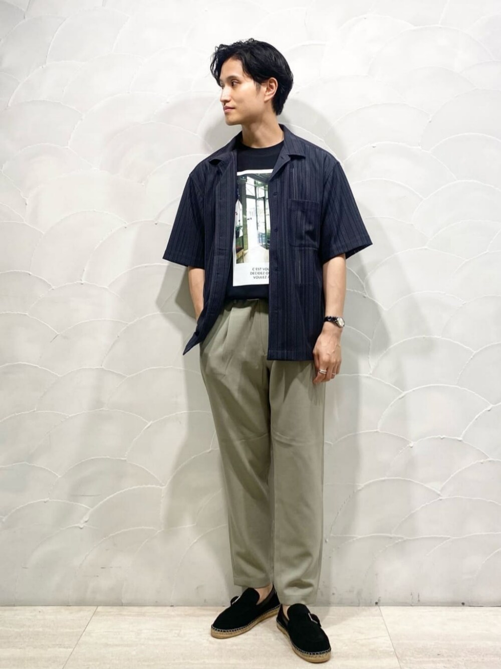 【着用した際のサイズ感】 178センチ/標準体型/靴28.0-28.5cm シャツ:Mサイズ着用:ジャスト カットソー:Lサイズ着用:ジャスト ボトムス:Lサイズ着用:ジャスト シューズ:27.0cmサイズ着用-小さい(表記通りのサイズ感) 【コーディネート】 すけ感のあるシャツにプリントTを合わせたトレンドコーデ。 足元はエスパを合わせて季節感のある着こなしに仕上げました。