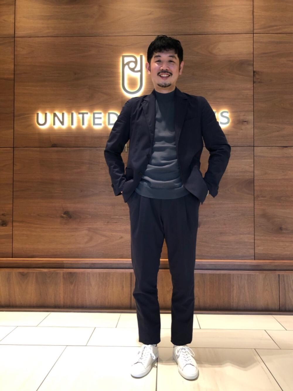ビジネスカジュアルでも、着用頂けるセットアップを、ほどよくカジュアルな雰囲気が出るように意識したスタイリングです。インナーにはモックネックの半袖ニットに、おすすめのスニーカーブランド【アーロン】を合わせ、シンプルで大人ぽいカジュアルを提案させて頂きました。