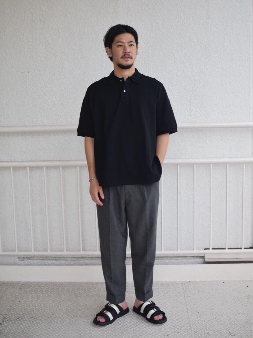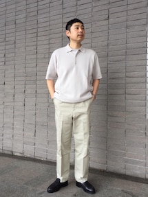 ゆとりのあるポロシャツをワイドパンツと合わせ、リラックス感が出るように意識しました。