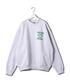 ソフトな裏起毛のスウェットの為、今の時期一枚で着用できるアイテムです。 今回はカジュアルなパンツと合わせてラフな印象に仕上げました。
