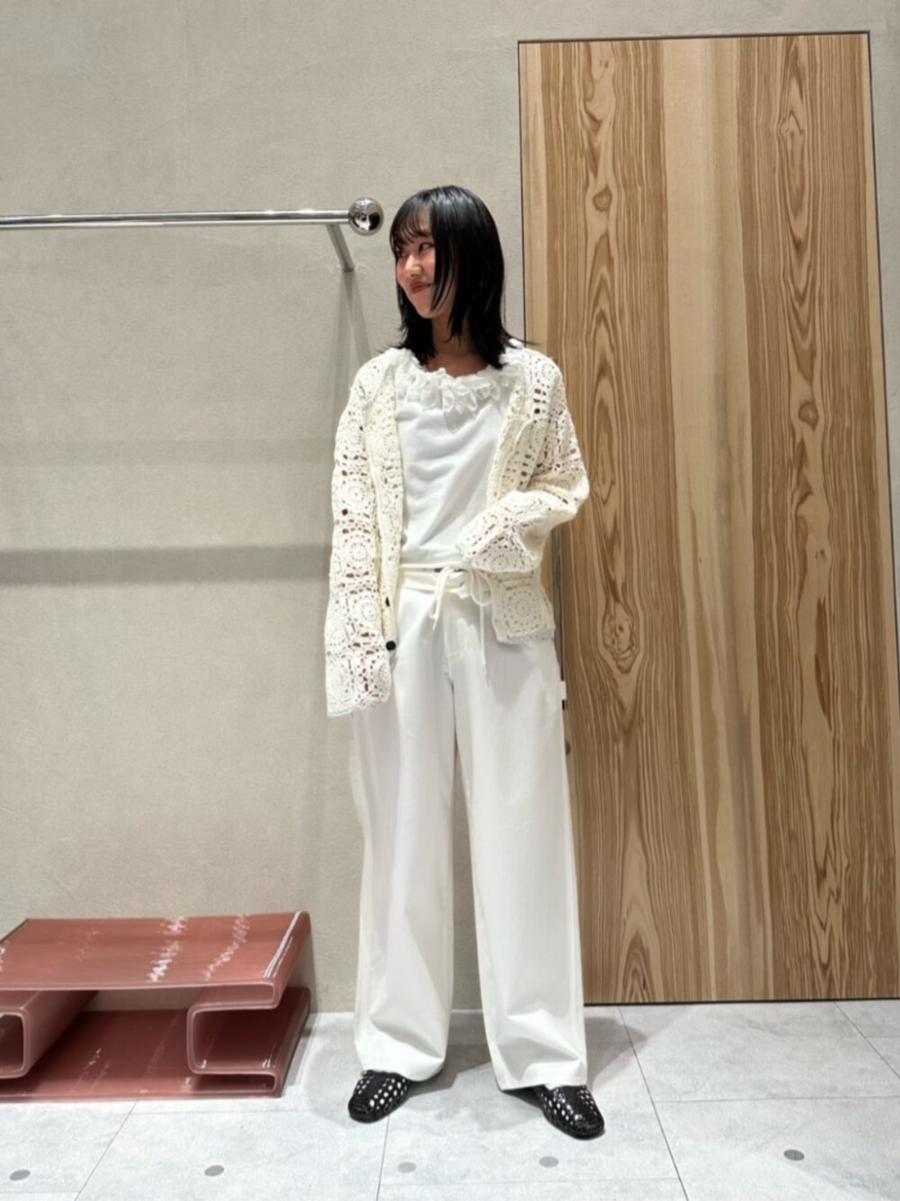 【サイズ感】 カーディガン:ゆったり 特に袖が長めです。 カットソー:標準的 身幅は標準的、丈は少し短めです。 パンツ:ややゆったり 重ね履きも出来そうな余裕があります。 【コーディネートポイント】 オールホワイトで爽やかにコーディネートしました。