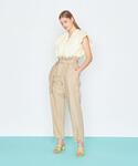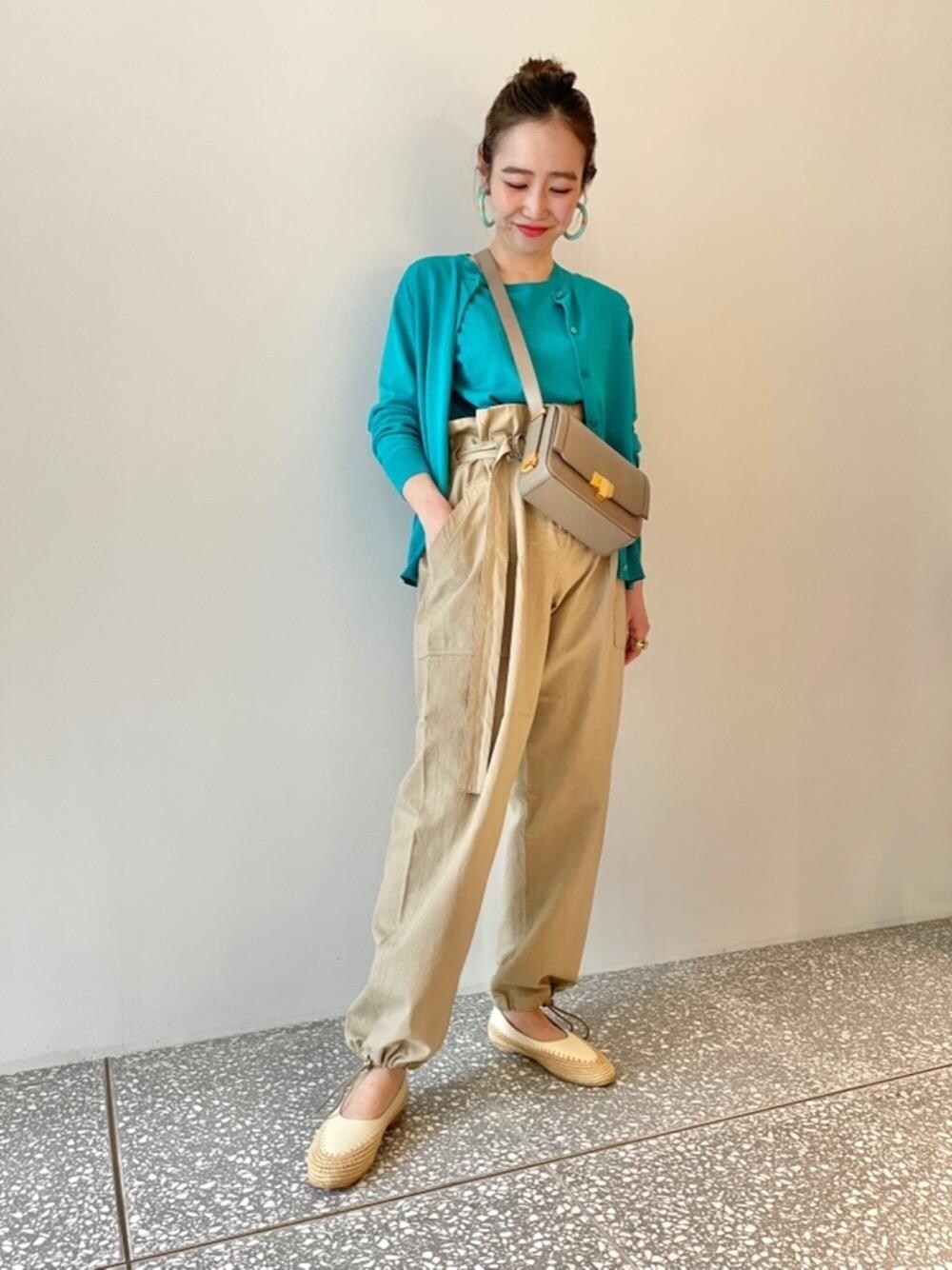 ●身長:156cm ●普段サイズ:トップス・ボトムス34か36 / シューズ23.5cm 【サイズ感】 トップス:肩周りコンパクト ボトムス:やや大きめ シューズ:標準的 【素材感・着心地】 トップス:柔らかく、フィット感があります ボトムス:薄手で涼しいです 【コーディネートポイント】 コンサバティブなテイストを取り入れたい気分の時は、同素材のノースリーブとカーディガンを合わせたアンサンブルがおすすめです。トップスがコンパクトなシルエットなので、ボトムスはボリュームの出るパンツでカジュアルダウンしてバランスを意識しました。