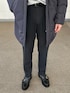 ボリュームのある中綿アウターを、上質なカシミアニットとスラックスで合わせました。色味をグレーのトーンで統一し、シックな雰囲気を意識しました。
