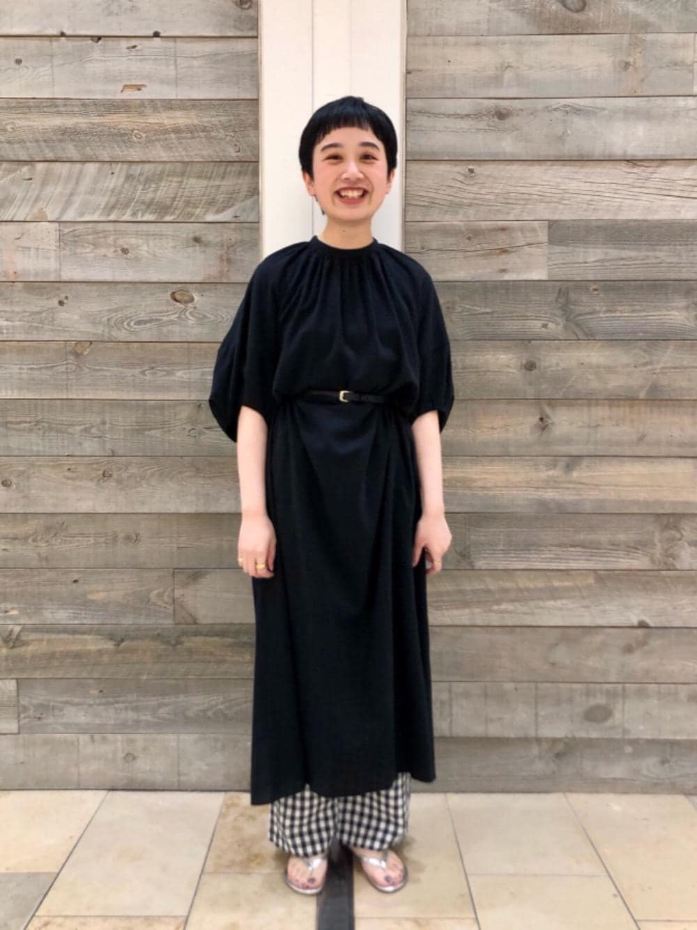 【サイズ感】 ワンピース:ゆったり パンツ:標準 シューズ:標準 【コーディネートのポイント】 さらりとした素材感が特徴のワンピースに、アクセントとしてギンガムチェックのパンツをレイヤードしました。 ベルトでブラウジングすることで、ふんわりとした素材感が映えます。