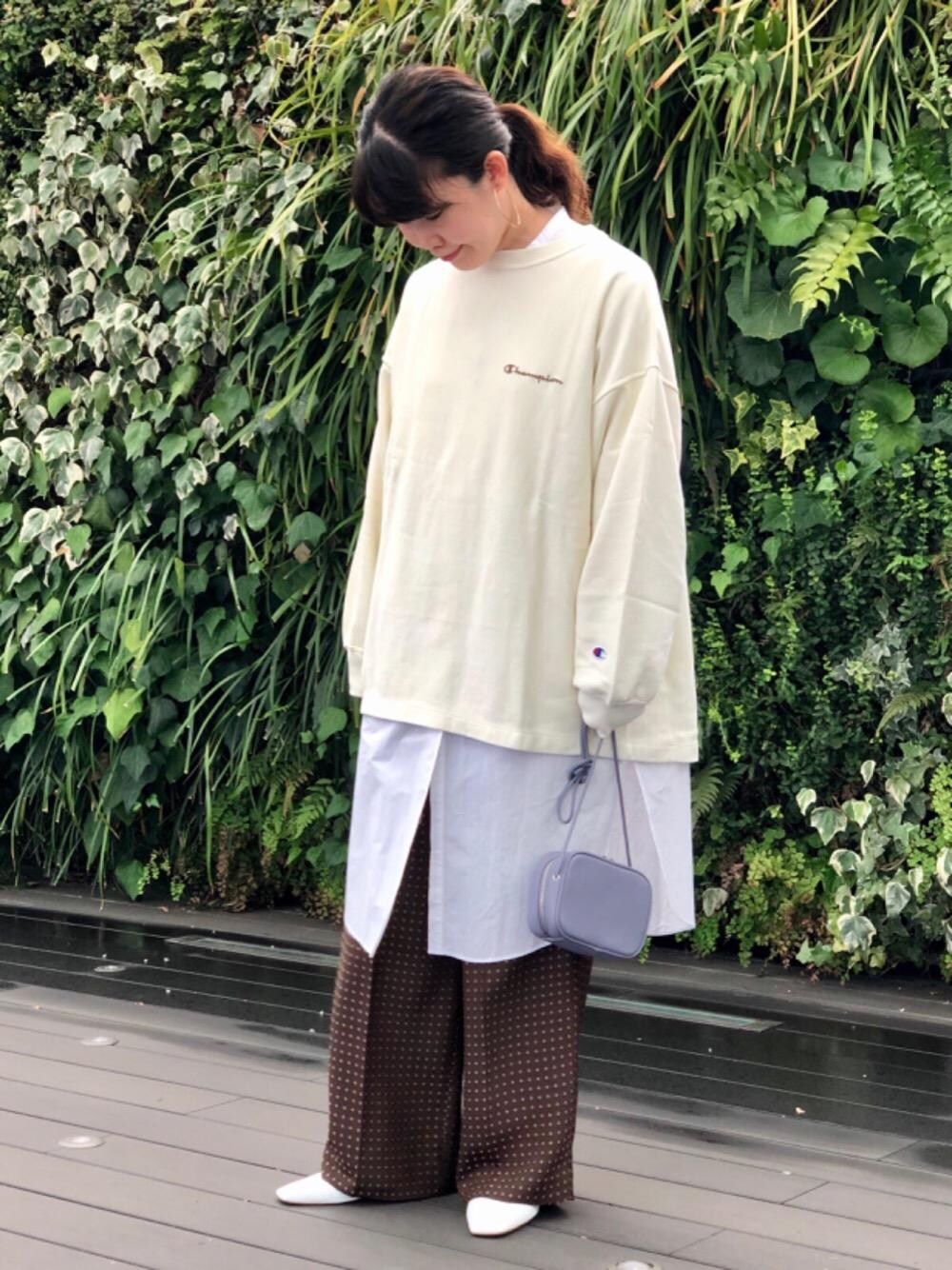ゆったりトップスにロング丈シャツを合わせてみました。