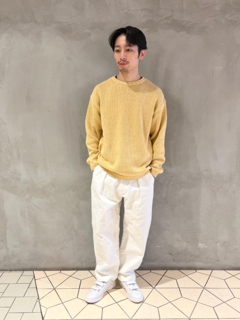 20代後半 身長:167cm 普段サイズ:トップス S/ボトムス S/シューズ 26cm 【サイズ感】 トップス:ゆったり ボトムス:ゆったり シューズ:ぴったり 【素材感】 トップス:やや厚手のコットンニット生地 ボトムス:厚手でハリのあるコットン生地 【コーディネートポイント】 新作のコットンニットをメインにコーディネート。SS初回投入なので、まだ早いですが春っぽさ意識しイエロー×ホワイトで爽やかな合わせにしてみました。