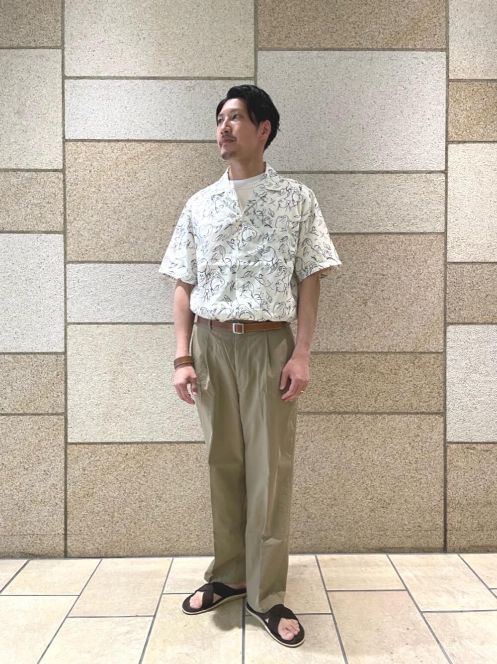 ●30代 ●178cm ●トップス→XL、L/ボトムス→M、L/ シューズ→26、26.5cm 【サイズ感】 シャツ→ゆったりめ ボトムス→ゆったりめ 【素材感】 シャツ→柔らかく薄手の質感です。 ボトムス→薄手。 【着心地】 全体的にゆとりあるシルエット且つ薄手の質感のため、リラックスして着用して頂けます。 【コーディネートポイント】 全体的にナチュラルな色合わせで都会的なリラックスコーデを意識しました。 脚長効果のある太めのパンツのタックインと、要所で取り入れたソリッドなデザインの革小物がポイントです。