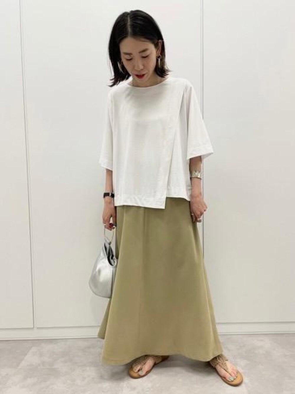 Tシャツコーデが多くなる夏場に、少し変化をくれるデザインTシャツ。 ベーシックな白に清涼感のあるカラーを合わせたリラックススタイルです。