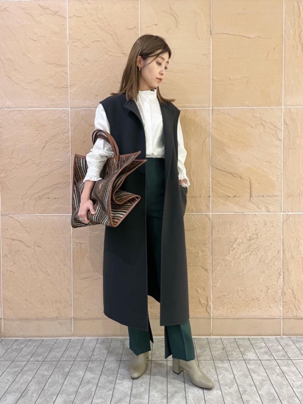 村上智子のベスト「UBCMD リバー ノーカラーベスト †◆」を使ったコーディネート