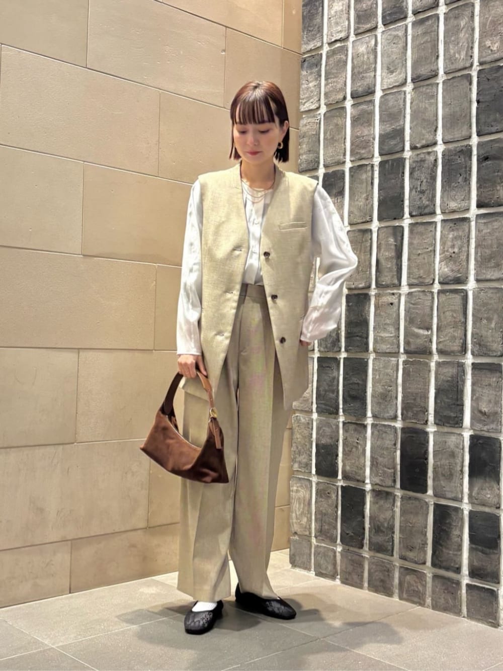 umemura(ビューティ&ユース ユナイテッドアローズ 大宮店)のスラックス「リネンライク バックゴムストレートパンツ -ウォッシャブル-」を使ったコーディネート