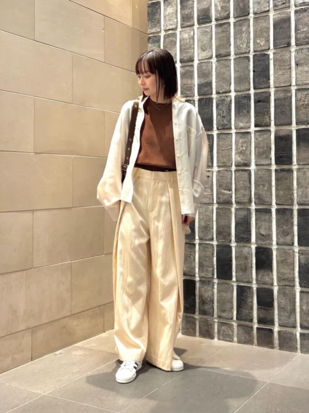 身長:158cm 【着用サイズ】 ・シャツ/FREE ・ニット/FREE ・パンツ/XSサイズ 【サイズ感】 ・シャツ/ややゆったり ・ニット/ややコンパクト ・パンツ/ややゆったり XSでウエスト、丈ジャストでした ・シューズ/普段通りのサイズで丁度良い 【コーディネートポイント】 ホワイト×ブラウンカラーでまとめました。 コンパクトなサイズ感のトップスはインしなくてもバランスがとりやすくオススメです。