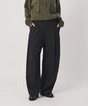 身長:158cm 【着用サイズ】 ・アウター/XS ・ニット/FREE ・パンツ/Sサイズ 【サイズ感】 ・アウター/ややゆったり ・ニット/標準 腕周りたっぷりしてます ・パンツ/標準 カーブ型のシルエットです ・シューズ/普段通りのサイズで丁度良い 【コーディネートポイント】 カーブパンツのシルエットが可愛いのでアウターはショート丈に。モノトーンでまとめました。