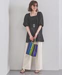 ●身長 154cm ●普段のサイズ トップス 36 ボトムス 34又は36 シューズ 23.5cm 【サイズ感】 トップス ゆったり スカート ウエストとヒップ周りはタイトなシルエット 【素材感】 トップス ハリのあるしっかりとしたコットン素材 スカート シャリ感がある麻素材 【着心地】 トップス 袖にはゴムが入っており、袖丈を調整可能 スカート マキシ丈スカートはボリュームが出がちですが、こちらは裾の広がりが柔らかでスッキリとお召しいただけます。
