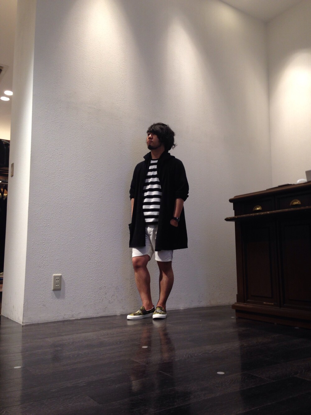 夏ぽくコーディネート ニット ナノユニバース パンツ リー シューズ champion
