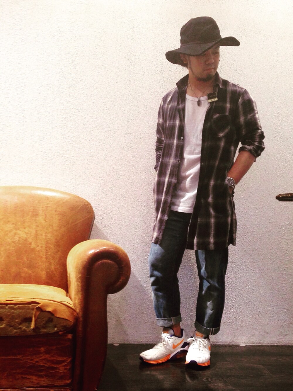 今のトレンドぽく… ハット: マルタンマルジェラ カット:チャンピオン シャツ:ナノユニバース パンツ:リーバイス シューズ:ナイキ アクセサリー:インディアンジュエリー 時計:タイメックス