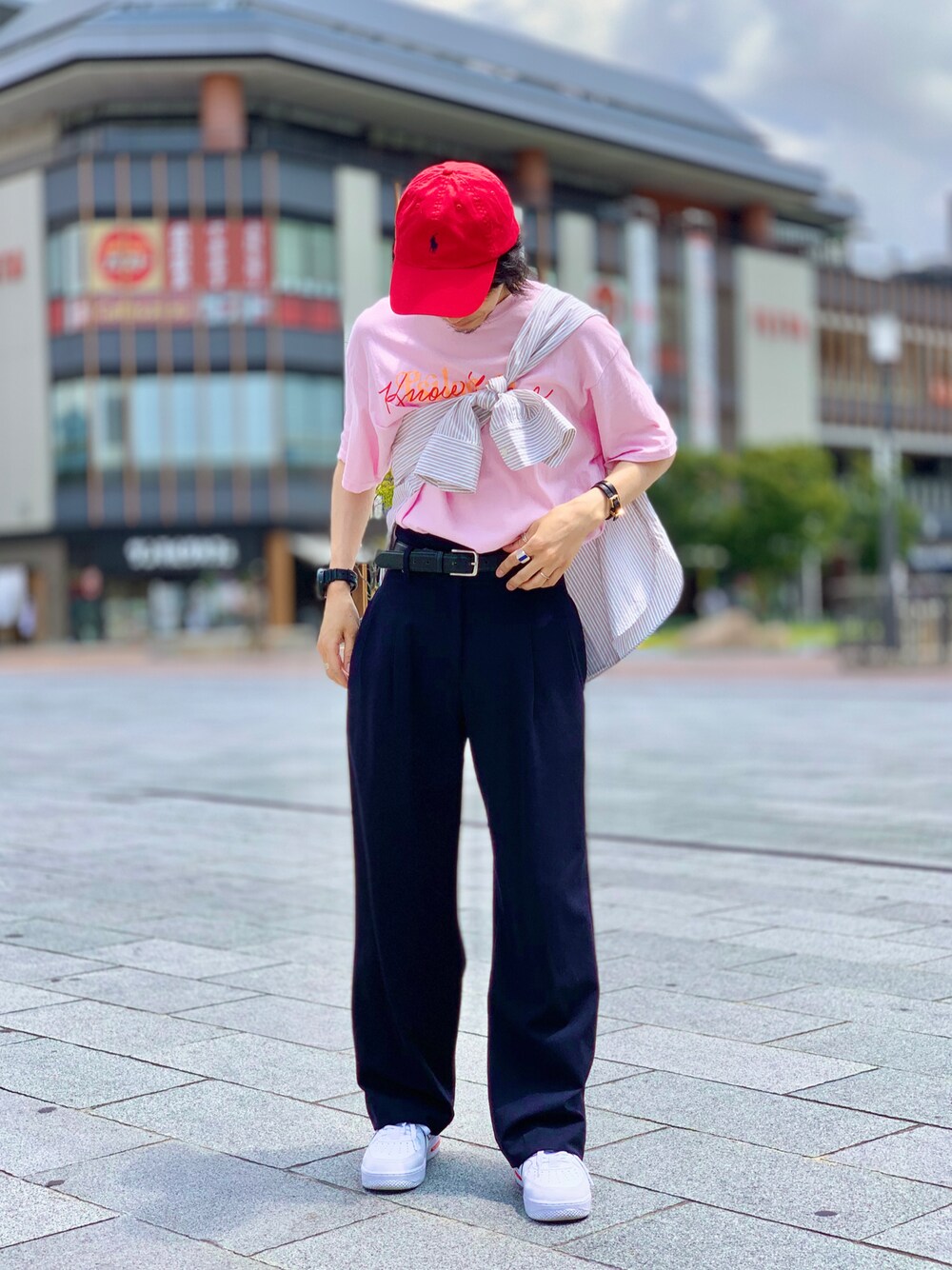 Instagram →ur_hmj_ytkskmk 色味が綺麗なストリートスタイル 色が綺麗なピンクのオーバーTをタックインしてスッキリ見えを意識しました✨ たすき掛けと赤色のキャップでアクセントを付け加えて、華やかさもプラスしてます 😊 オーバーTのタックイン×ワイドパンツの相性って本当に良いですよね😆 Instagram,WEARのフォロー いいね❤、お気に入り登録➕、通知ON🔔 お願いします!!
