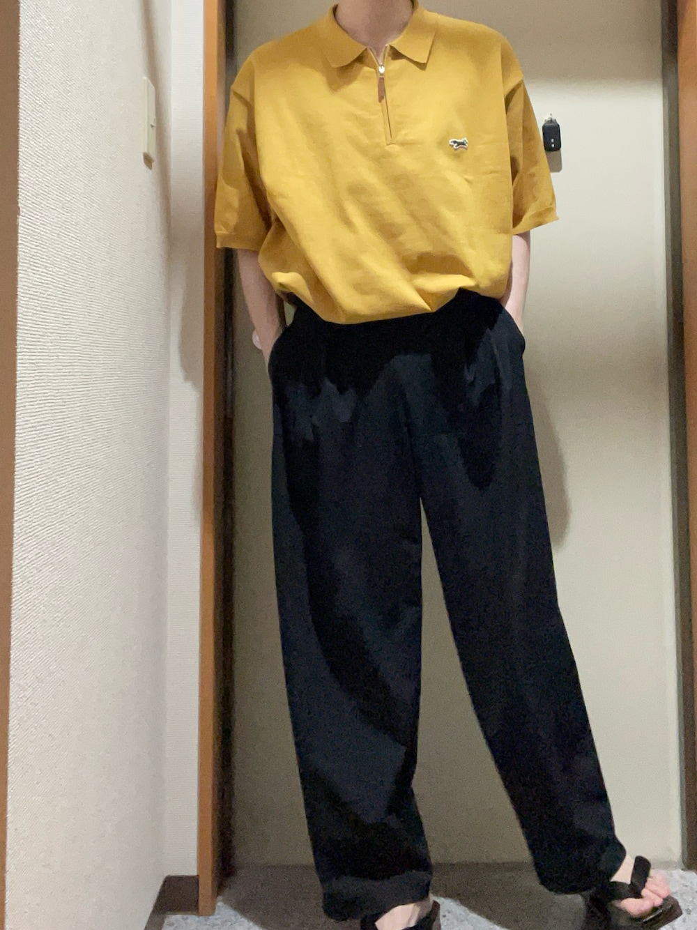 008nのニット/セーター「TOWN CRAFT/タウンクラフト 別注 ワンポイント ポリエステルニットハーフジップ/半袖ポロシャツ」を使ったコーディネート
