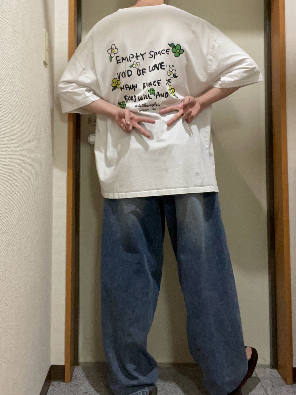 008nのTシャツ/カットソー「新柄追加 フロント / バックプリント ワンポイント刺繍 モチーフ ビッグシルエットTシャツ ユニセックス カットソー 【MARK GONZALES ARTWORK COLLECTION / マークゴンザレス】」を使ったコーディネート