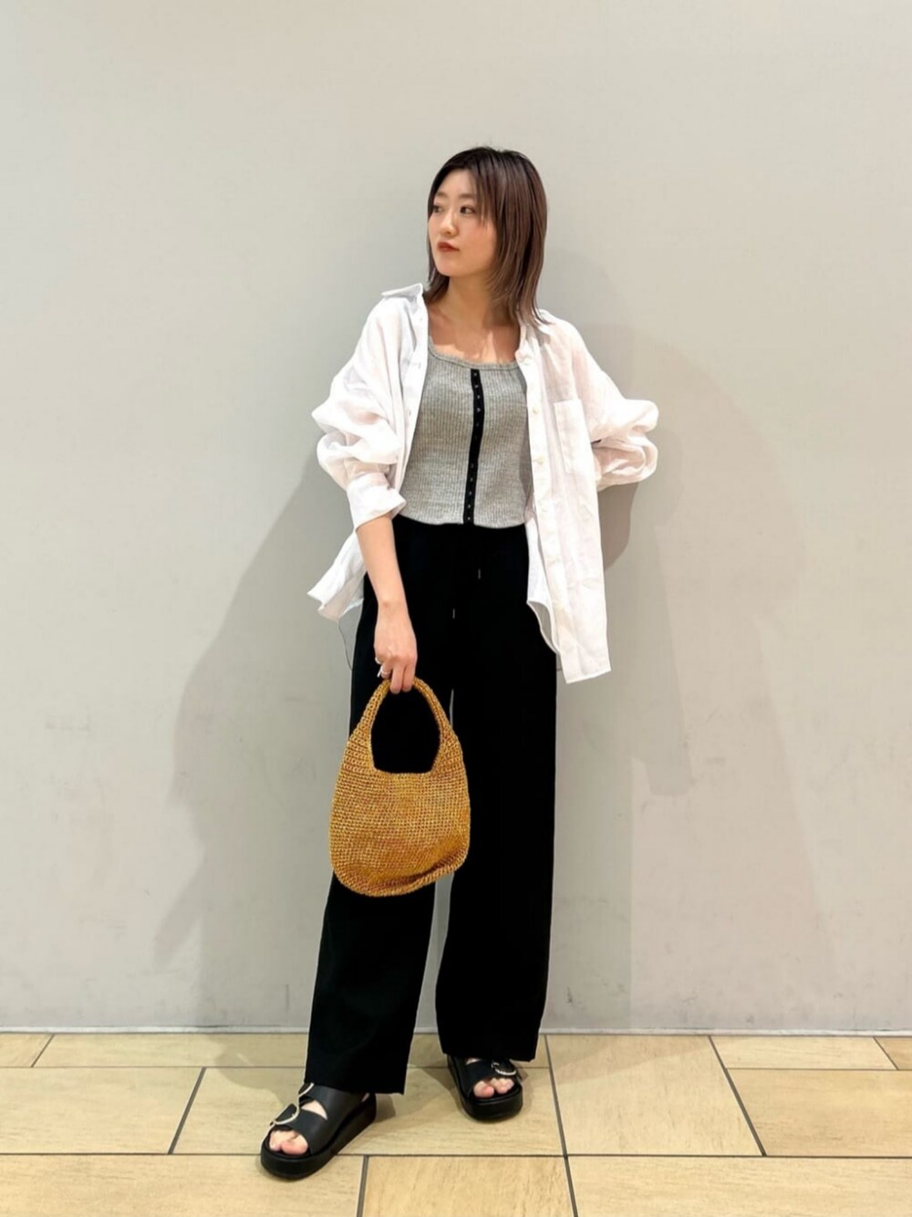 【サイズ感】 シャツ:ヒップまで隠れる丈感 トップス:コンパクト ボトムス:ややすっきり シューズ:やや大きめ 【コーディネートのポイント】 リネンシャツを使った初夏コーデです。ゆったりとしたサイズバランスで、抜け感のある軽やかさがおすすめのシャツです。