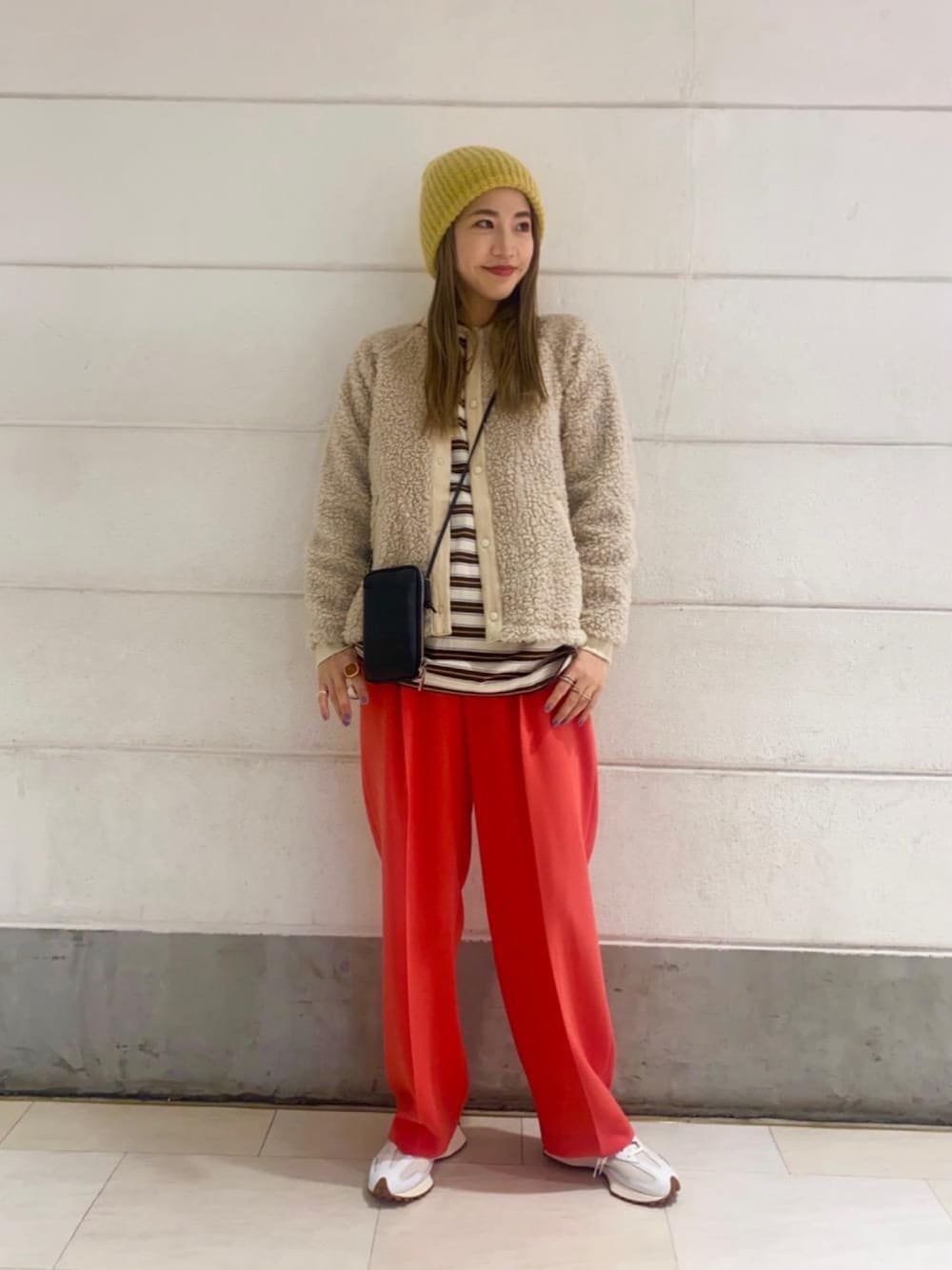 ・年齢:20代後半 ・身長:164cm ・普段サイズ:トップスM/パンツSM/シューズ23.5cm 【サイズ感】 アウター:大きめ/XXL(キッズ) パンツ:標準/Mサイズ 【素材感】 アウター:ポリエステル100% パンツ:アセテート72%ポリエステル28% 【着心地】 アウターはキッズのXXLのサイズですが、ゆとりがあるので164cmある私でも着やすく、とても軽くてストレスなく着用していただけます。 【コーディネートポイント】 シンプルなデザインのpatagoniaのボアジャケットには、差し色に赤色のパンツを合わせることでスタイリングのメリハリがでます。 また、ちょっと遊び心あるスタイリングにするため、ニット帽を合わせたのもポイントです。