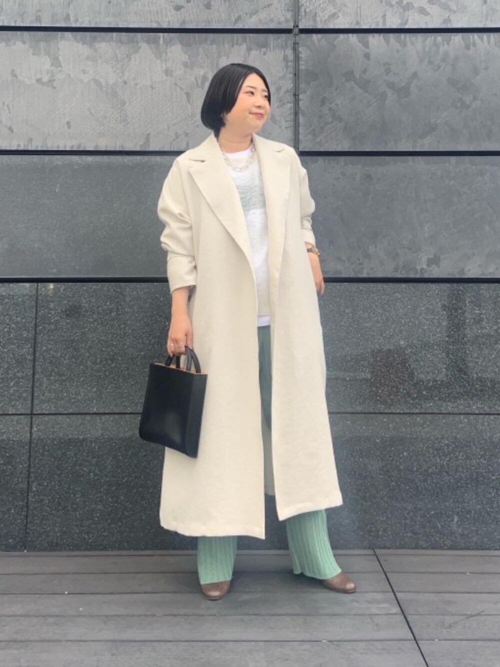 透け感のあるニットに〈kobak〉別注のフォトTシャツを合わせ、コーディネートのポイントにしました。アウターは、適度な厚さの生地感で少し寒さが残る春先にサラッと羽織って頂けるアイテムです。